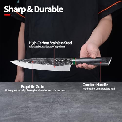 Measuring 8 inches, this chef’s knife is your go-to tool for effortlessly slicing through vegetables, meats, and fish. Whether you’re dicing, chopping, or slicing fruits, this knife handles all types of ingredients with ease, saving you valuable time in the kitchen.