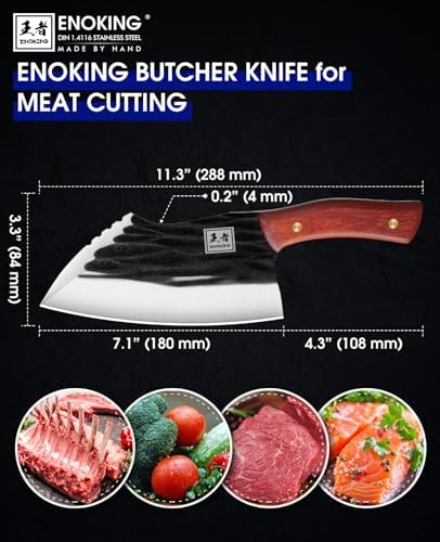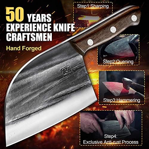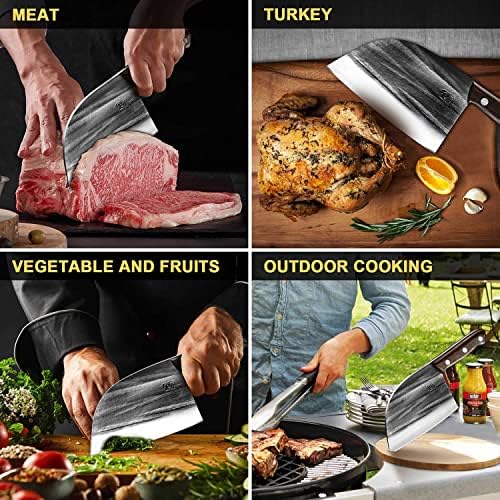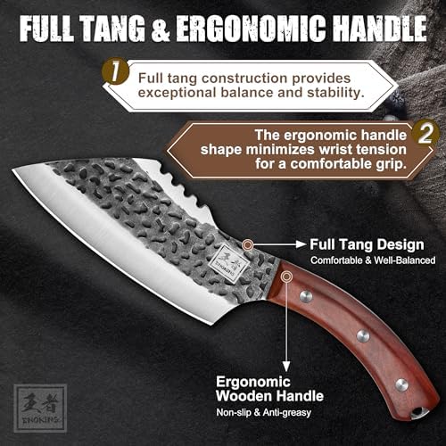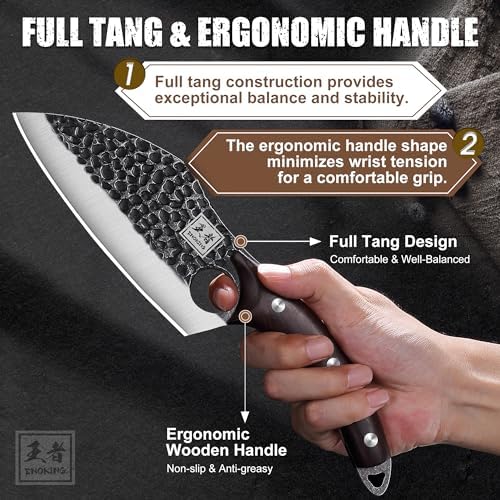 Crafted with a full-tang construction and an ergonomic wooden handle, this knife offers exceptional balance and comfort. Whether you’re cooking indoors or outdoors, you can rely on its durability and steady grip for all your cooking needs.
