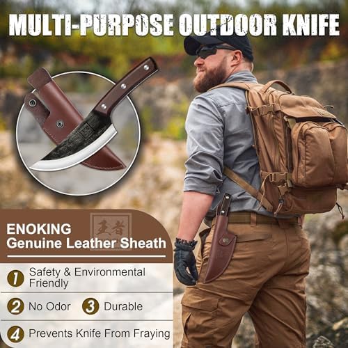 This knife comes with a premium leather sheath, ensuring safe storage and easy transport. It’s the ideal companion for camping trips, grilling, hunting adventures, or any cooking journey, allowing you to keep your knife handy and protected.
