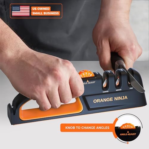 Whether you’re in the kitchen, out on a camping trip, or hunting, our Orange Ninja sharpener meets all your needs. It effectively sharpens kitchen knives, pocket knives, and hunting knives, ensuring that every blade is maintained with precision.