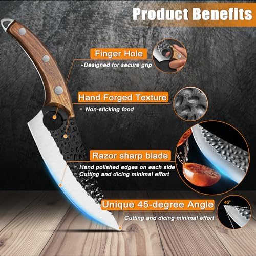 Crafted from high-quality German stainless steel, our knife features a super sharp blade with 16-18% chromium and 0.6-0.75% carbon content. This premium construction ensures the blade is rust-proof, providing a smooth and shiny surface that makes cutting through meats, fruits, and vegetables effortless.