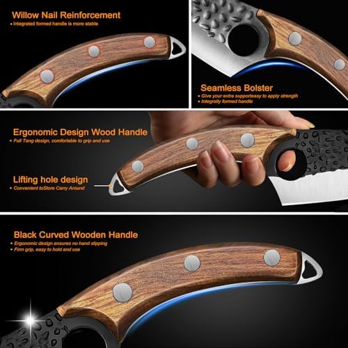 This professional butcher knife is forged from high-carbon rust-proof German stainless steel (5Cr15MoV). With a Rockwell hardness rating of 56-58, it combines exceptional sharpness with remarkable durability, ensuring it retains its edge even with regular use.